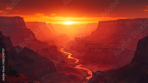 Fototapeta premium A breathtaking view of a canyon at sunset, showcasing vibrant orange and red...