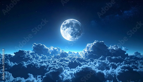 Obraz premium A breathtaking view of a full moon illuminating the night sky over fluffy...