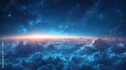 © Andi, Fototapeta premium A breathtaking view of a starry night sky above a vast sea of clouds.