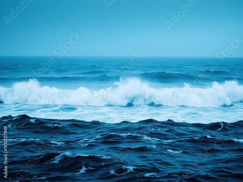 Fototapeta premium A breathtaking view of crashing waves in the vast ocean, capturing the power...