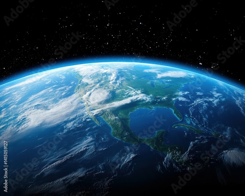 © Vangly, Fototapeta premium A breathtaking view of Earth from space, showcasing North America and vibrant blue oceans.
