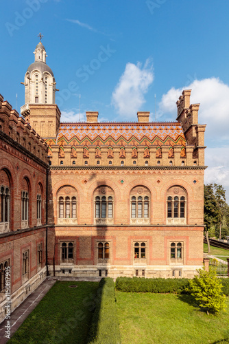 © Scott Prokop, Fototapeta premium A brick building with a clock tower and a large window