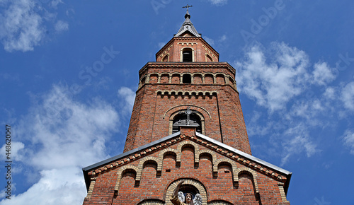 © Jacek Sakowicz, Fototapeta premium A brick chapel and a Roman Catholic church of St. Michael the Archangel built at the turn of the 19th and 20th centuries in Jabłonka Kościelna in Podlasie, Poland.