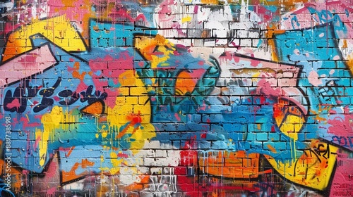 Fototapeta premium A brick wall adorned with urban graffiti art showcases vibrant street creativity and expression