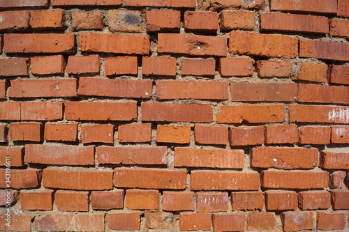 © Анастасия Егорова, Fototapeta premium A brick wall close up wallundefined orange