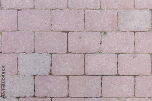 © Iurii Gagarin, Obraz premium A brick wall with a pinkish color, decorative artificially aged paving slabs