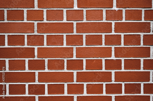 Obraz premium A brick wall with brown bricks and white cement in between. Seen in Germany, April 2019