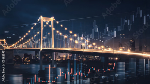 Obraz premium A bridge made of glowing lines, spanning over financial charts, representing...
