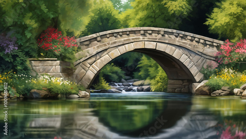 © AI machine, Fototapeta premium A bridge over a river,generative ai