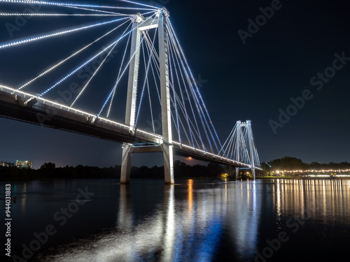 © vadim, Fototapeta premium A bridge over a wide river with night illumination.