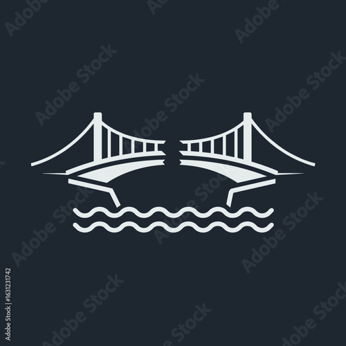 Obraz premium A bridge with a crack in the middle over a body of water, symbolizing...