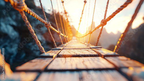 © Wanida, Obraz premium A bridge with a rope hanging from it. AI Generated