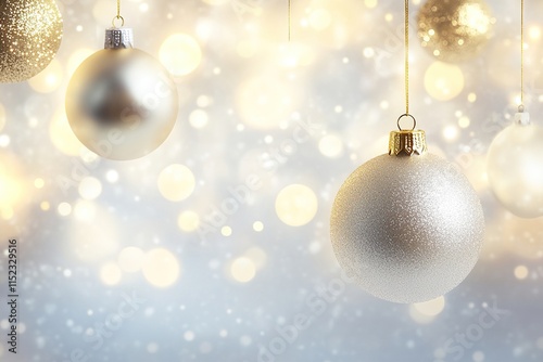 Fototapeta premium A bright and minimal Christmas background with soft glowing golden bokeh lights floating delicately