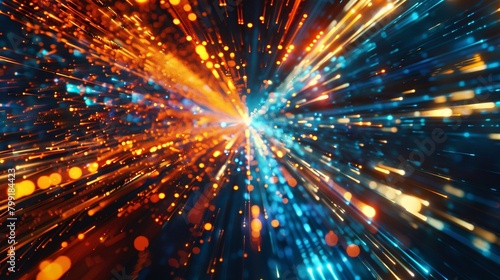 © Tatiana, Obraz premium A bright blue and orange light with many small dots