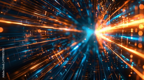 © Tatiana, Fototapeta premium A bright blue and orange light with many small dots