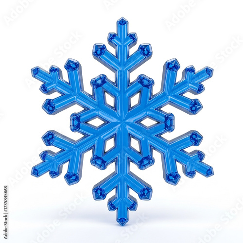 Fototapeta premium A bright blue, crystalline snowflake isolated on a white background