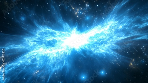 © Habibur Rahaman, Naklejka premium A bright blue nebula explodes in space.