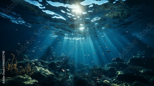Fototapeta premium A bright blue ocean with sunlight shining down on it