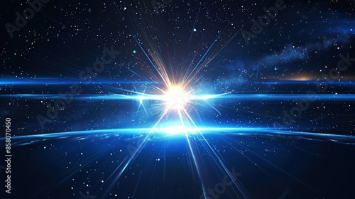 © nurul, Naklejka premium A bright blue planet with a bright light shining coming from the sun