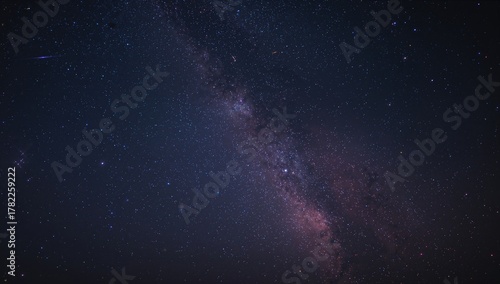 © Emin, Naklejka premium A bright flash illuminates the night sky, horizontal backdrop featuring a starry expanse and vibrant golden-red galaxy