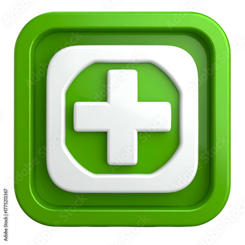 Obraz premium A bright green square icon with a white cross inside a rounded square, on a...
