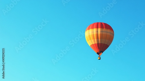 Fototapeta premium A bright hot air balloon floats peacefully against a vivid blue sky.