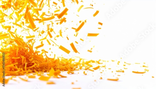 © expojad, Fototapeta premium A bright image showing falling orange shreds against a white background space