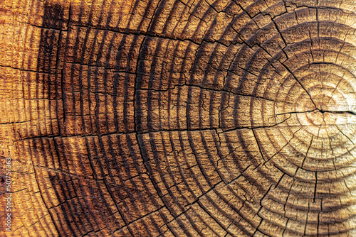 © Нина Дроздова, Fototapeta premium a bright juicy clear image is an abstraction of the cut of a felled tree with rings in a slice for the design of carpentry office work or websites on wallpaper; the sawmill industry;