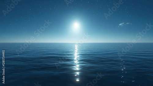 © Viktor, Obraz premium A bright light shines brightly over the ocean at night