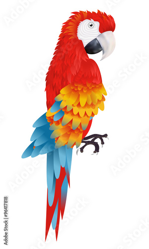 © yayasya, Fototapeta premium A bright macaw parrot isolated on white background illustration
