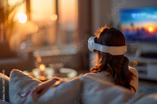 © Naret, Obraz premium A bright, minimalist indoor garden with a variety of lush houseplants and a person gently watering them.