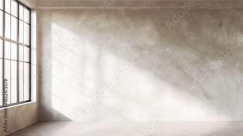 Fototapeta premium A bright, minimalistic interior space featuring textured walls and large...