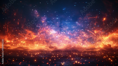 © Siyam, Fototapeta premium A bright orange and blue sky with a lot of stars and fire