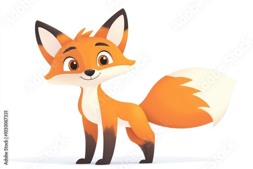 © Aleza, Obraz premium A bright orange cartoon fox stands playfully on a white background