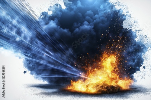 Obraz premium A bright orange explosion with blue smoke and light streaks against a...