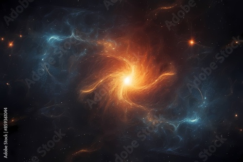 Fototapeta premium A Bright, Orange Nebula Swirls In Deep Space