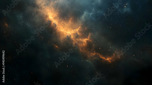 © Siasart Stock, Obraz premium A bright orange nebula with swirling clouds and stars in a dark space.