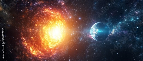 © Tyoma, Obraz premium A bright orange sun is surrounded by a cloud of gas and dust