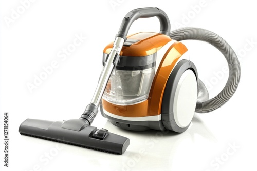 © Ева Поликарпова, Fototapeta premium A bright orange vacuum cleaner with a sturdy black handle, ready for cleaning duty