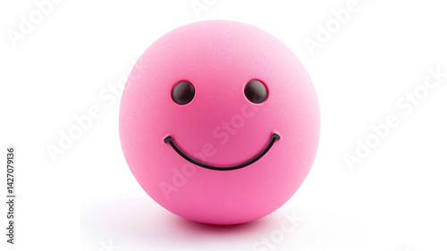 Fototapeta premium A bright pink, egg-shaped stress ball with a simple black smiley face.