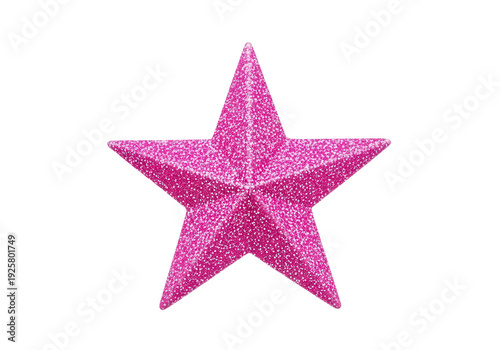 Fototapeta premium A bright pink star with a glittery texture on a white background.