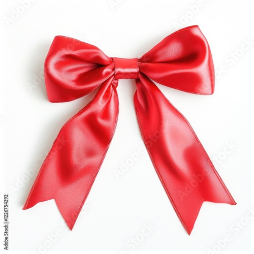 © Ева Поликарпова, Naklejka premium A bright red bow sitting alone on a white surface, simple and bold