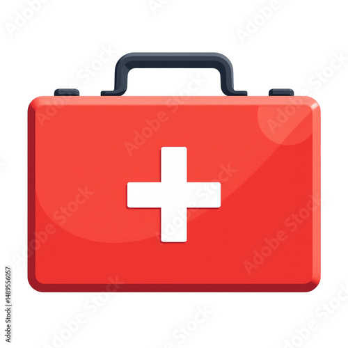 © KAMAPAN, Obraz premium A bright red first aid kit for emergency needs.