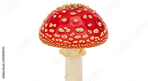© Ulfiatul Savira, Obraz premium A bright red mushroom with white spots, known as the fly agaric, isolated on a white background.