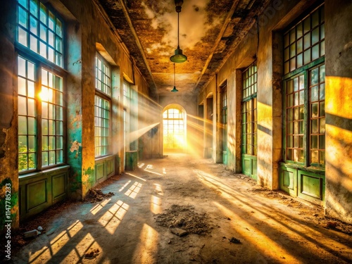 © Autun, Fototapeta premium A bright, spacious corridor, bathed in natural light, echoes emptiness within a building of grand windows.