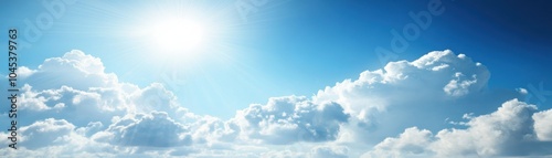 © Navaporn, Obraz premium A bright, sunny sky with fluffy white clouds drifting under a clear blue expanse, creating a serene and uplifting atmosphere.