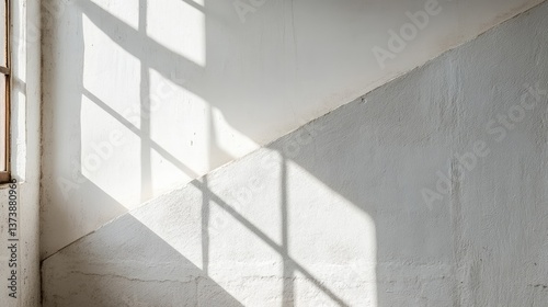 © Pannee, Obraz premium A bright window casting geometric light patterns on a minimalist white wall