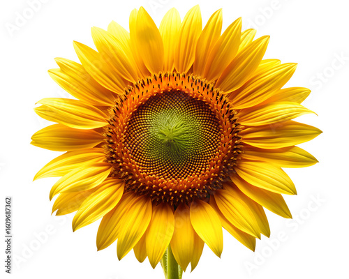 © Siriya54, Fototapeta premium A bright yellow sunflower in full bloom isolated on a transparent background