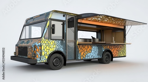 © Hungarian, Obraz premium A brightly patterned food truck with an open serving window