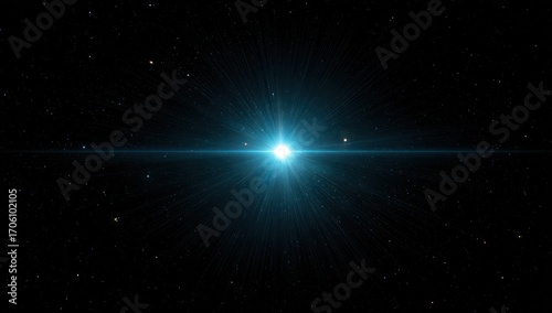 © reni, Fototapeta premium A brilliant celestial light source radiates intense turquoise light against a dark starry backdrop.
